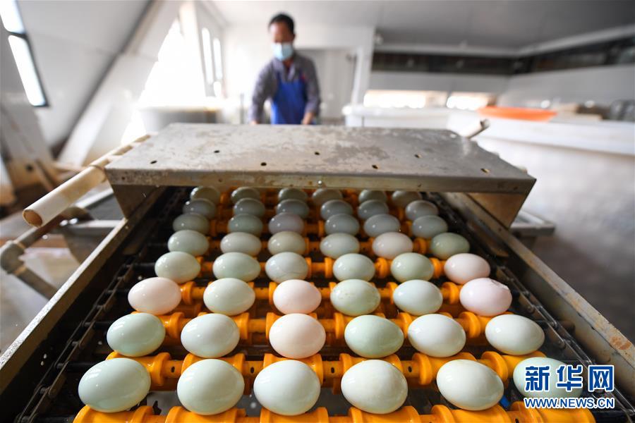江蘇高郵鴨集團(tuán)的工作人員將腌制好的鴨蛋放到塑封包裝流水線上(4月15日攝)。“高郵鴨蛋”是江蘇高郵的特色農(nóng)業(yè)名片。近年來(lái),當(dāng)?shù)卦诹挤N繁育、生態(tài)養(yǎng)殖、產(chǎn)品加工等方面加大力度,推動(dòng)高郵鴨蛋品牌化建設(shè),讓小鴨蛋成為帶動(dòng)農(nóng)戶致富的大產(chǎn)業(yè)。2019年,高郵市共計(jì)生產(chǎn)熟制鴨蛋產(chǎn)品近11.2億枚,年產(chǎn)值近17.68億元。新華社記者李博攝