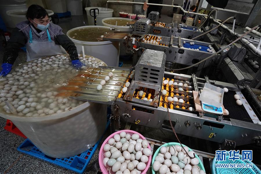 江蘇高郵鴨集團(tuán)的工作人員在生產(chǎn)車(chē)間內(nèi)清洗分揀鴨蛋(4月15日攝)?!案哙]鴨蛋”是江蘇高郵的特色農(nóng)業(yè)名片。近年來(lái),當(dāng)?shù)卦诹挤N繁育、生態(tài)養(yǎng)殖、產(chǎn)品加工等方面加大力度,推動(dòng)高郵鴨蛋品牌化建設(shè),讓小鴨蛋成為帶動(dòng)農(nóng)戶致富的大產(chǎn)業(yè)。2019年,高郵市共計(jì)生產(chǎn)熟制鴨蛋產(chǎn)品近11.2億枚,年產(chǎn)值近17.68億元。新華社記者韓瑜慶攝