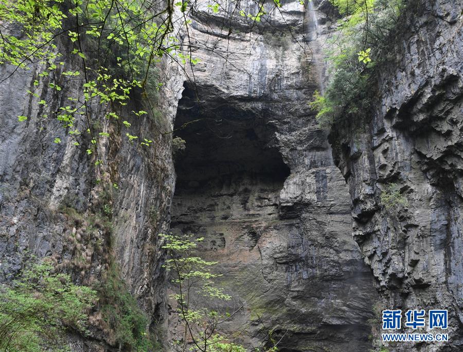 地洞河天坑的巖壁。新華社張博文攝