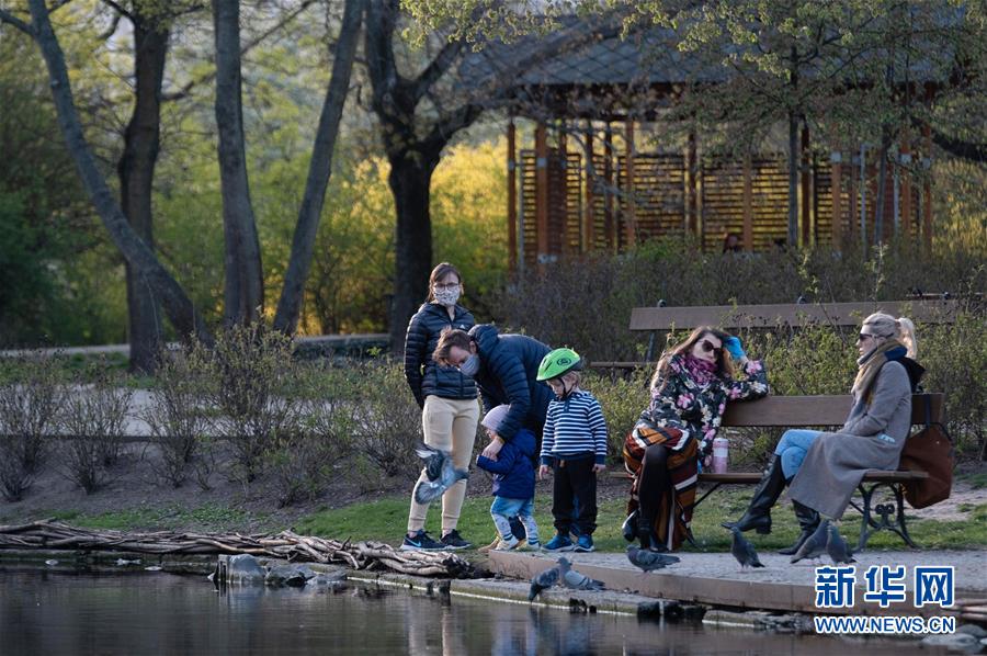 4月20日,人們?cè)诓ㄌm華沙的克拉辛斯基公園里散步。新華社記者周楠攝