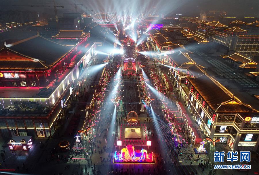 西安大唐不夜城夜景(2019年2月17日無人機照片)。 新華社記者 邵瑞 攝