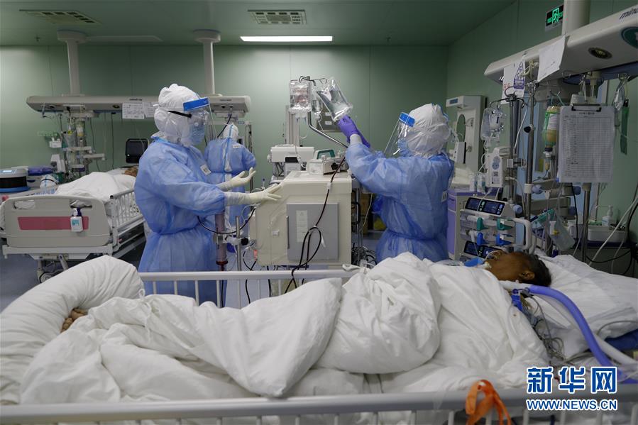 4月24日,在位于武漢的華中科技大學同濟醫(yī)學院附屬協和醫(yī)院西院,醫(yī)務人員在護理核酸檢測結果轉陰的新冠肺炎病人。新華社記者沈伯韓攝