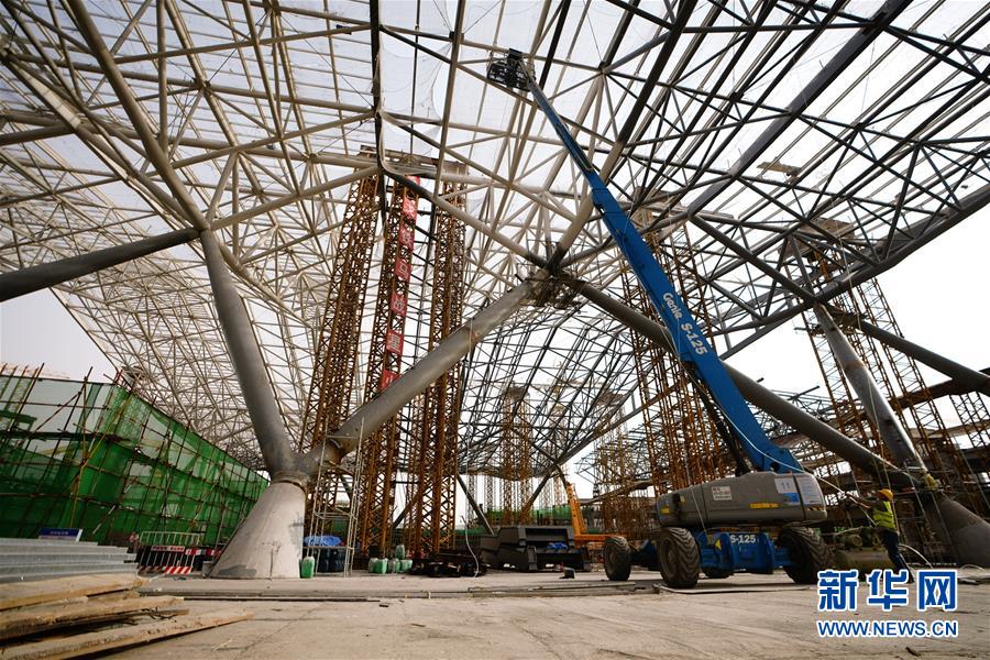 4月24日,中鐵建設集團的工人在星火站施工。北京星火站是京沈高鐵的始發(fā)站,站房總建筑面積18.3萬平方米,將于2020年底完工。目前正在進行混凝土主體結構收尾工作,鋼結構主體正在緊張施工,即將完工。新華社記者邢廣利攝