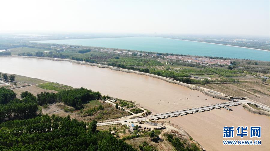 4月24日在山東濟(jì)南拍攝的黃河景色(無(wú)人機(jī)照片)。春暖花開(kāi)的時(shí)節(jié),濟(jì)南黃河兩岸春風(fēng)送綠,大河、綠植與城市構(gòu)成了一幅春的畫(huà)卷。新華社記者王凱攝
