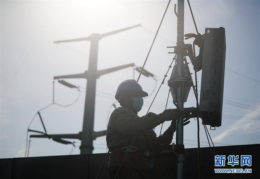 4月25日,在南京220千伏城南河變電站屋頂,工人在架設(shè)5G設(shè)備。當(dāng)日,三大通信運(yùn)營(yíng)商的2座5G、3座4G基站建設(shè)工作在南京220千伏城南河變電站屋頂有序展開(kāi)。在變電站內(nèi)建設(shè)基站可有效利用電網(wǎng)資源,縮短建設(shè)周期,節(jié)約建設(shè)成本。新華社記者季春鵬攝