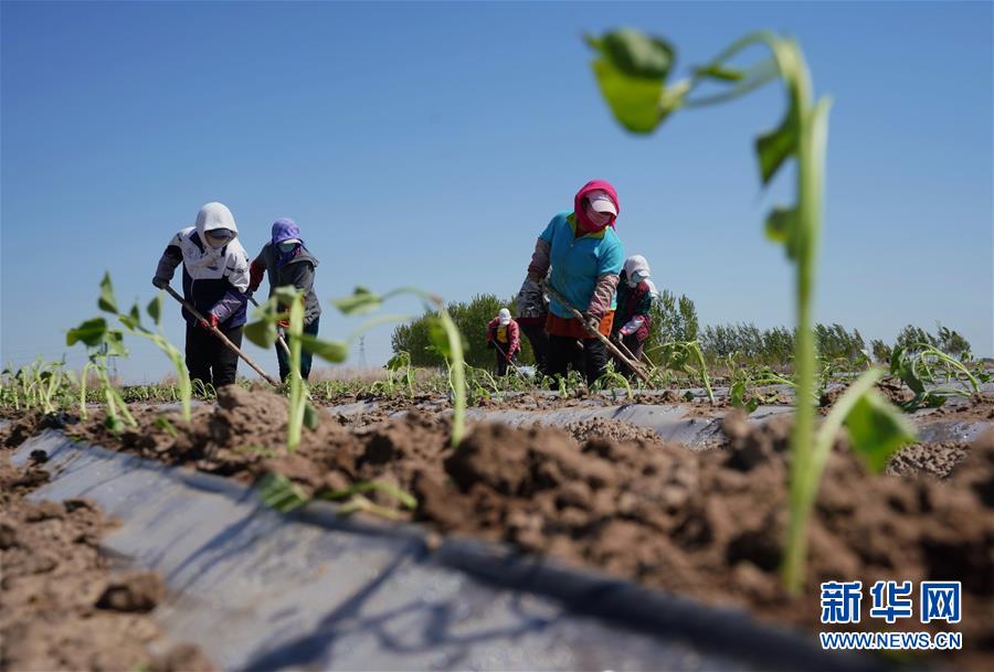 4月25日,灤南縣東黃坨鎮(zhèn)新戶村農(nóng)民給栽植好的煙薯秧苗培土。近年來,河北省灤南縣利用當(dāng)?shù)赝寥篮蜌夂蛱攸c(diǎn),引導(dǎo)農(nóng)民因地制宜發(fā)展煙薯種植,取得良好效果。目前該縣煙薯種植面積達(dá)3萬多畝,每畝年收入達(dá)5000多元。新華社記者楊世堯攝