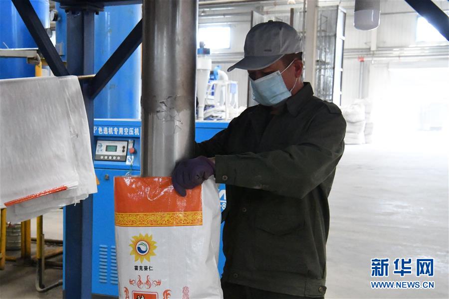 4月26日,中哈霍爾果斯國(guó)際邊境合作中心中方配套區(qū)內(nèi)的霍爾果斯霍克葵仁商貿(mào)有限公司生產(chǎn)車間內(nèi),員工將產(chǎn)品裝袋。3月以來,在做好疫情防控的前提下,新疆霍爾果斯“口岸經(jīng)濟(jì)”加快復(fù)蘇,每天出入其中的商販和游客逐漸增多。與此同時(shí),位于中哈霍爾果斯國(guó)際邊境合作中心中方配套區(qū)內(nèi)的各家企業(yè)正抓緊時(shí)間生產(chǎn)。新華社記者顧煜攝