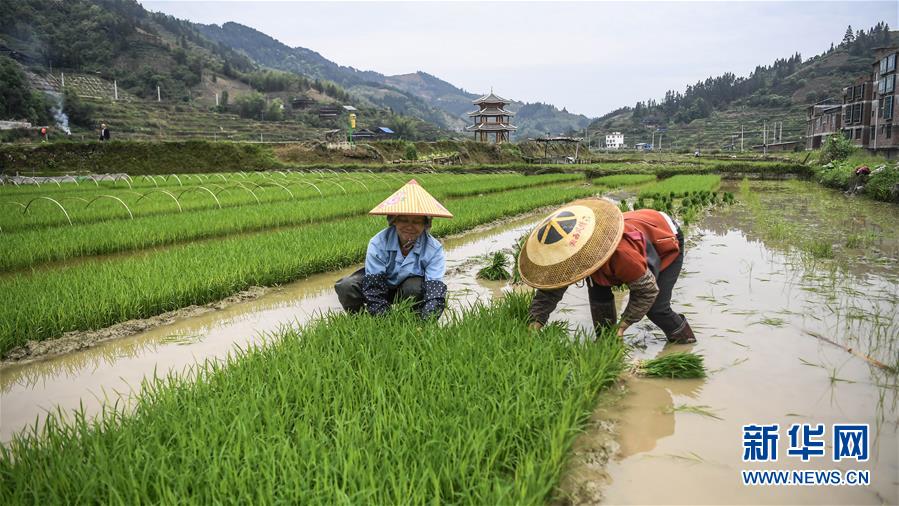 廣西三江侗族自治縣八江鎮(zhèn)平善村村民在田間拔秧苗(4月25日攝)。目前,廣西柳州市三江侗族自治縣群眾抓住時令,搶種早稻,培育靈芝和果蔬等經(jīng)濟作物,全力發(fā)展生產(chǎn),決戰(zhàn)脫貧攻堅。三江侗族自治縣地處滇黔桂石漠化片區(qū),是國家扶貧開發(fā)工作重點縣。新華社記者張愛林攝