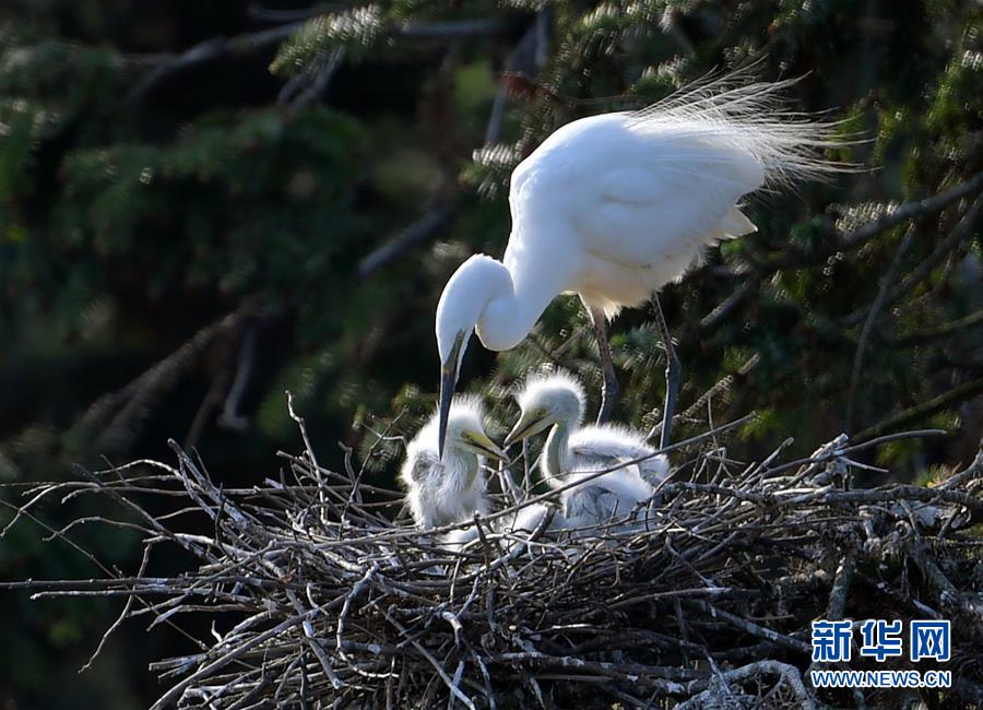 在象山森林公園,白鷺和幼鳥(niǎo)在一起(4月26日攝)。近日,在江西省南昌市新建區(qū)象山森林公園內(nèi),已安家筑巢的大批鷺鳥(niǎo)正陸續(xù)孵化后代,一派生機(jī)勃勃的景象。新華社記者彭昭之?dāng)z