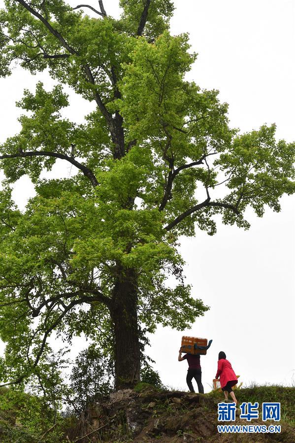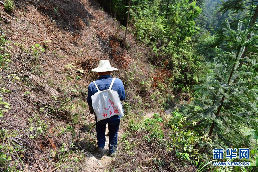 李義成走在山間小路上,準備了解群眾春耕生產情況(2019年4月23日攝)。新華社記者黃孝邦攝