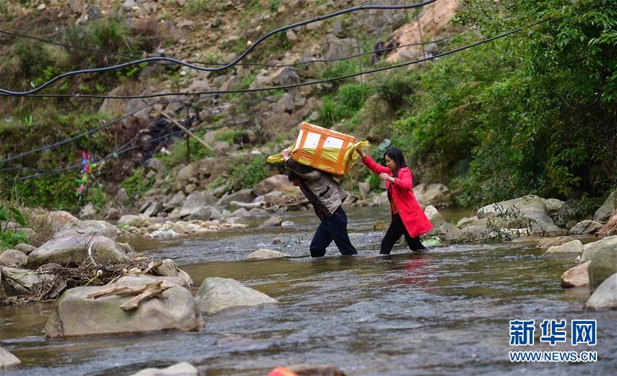 3月25日,在桂黔烏英苗寨,村民在搬運螺苗,準備投放。新華社記者黃孝邦攝