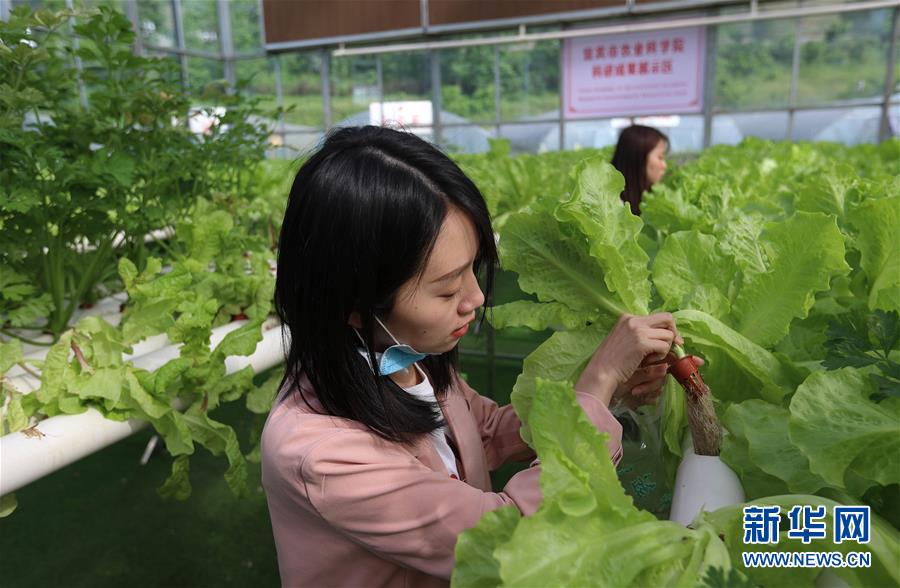4月29日,參觀者在珙縣三合村現(xiàn)代農(nóng)業(yè)產(chǎn)業(yè)示范園區(qū)觀看無土栽培的蔬菜。新華社記者江宏景攝