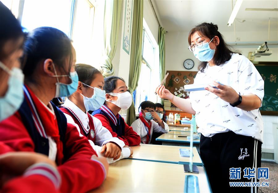 4月30日,諸暨市暨陽小學(xué)五年級4班班主任宣明霞在主題班會上向?qū)W生講解家庭用餐使用公筷公勺的重要性。當日,浙江省諸暨市暨陽小學(xué)五年級4班開展“公筷公勺新家風(fēng)”主題班會活動,通過海報設(shè)計、情景劇表演等強化孩子們使用公筷公勺的意識,倡導(dǎo)文明用餐。新華社記者 韓傳號 攝