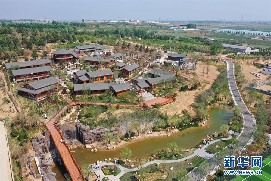 這是5月1日拍攝的河南省鶴壁市淇濱區(qū)鉅橋鎮(zhèn)崗坡村渝派火鍋樂(lè)園(無(wú)人機(jī)照片)。 新華社記者馮大鵬攝