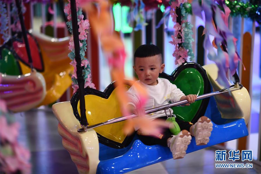 5月2日,一名小朋友在青海西寧一游樂場(chǎng)內(nèi)玩耍?!拔逡弧奔偃掌陂g,人們以多種方式放松心情、享受假日。新華社記者張宏祥攝