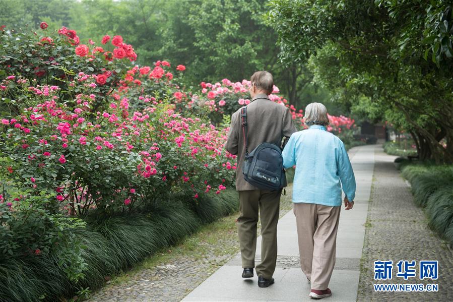 5月5日,游客在西湖畔的杭州花圃觀看月季花展?!拔逡弧逼陂g,第八屆杭州西湖月季花精品展在杭州西子湖畔舉行,展出國(guó)內(nèi)外700余個(gè)月季品種。新華社記者翁忻旸攝