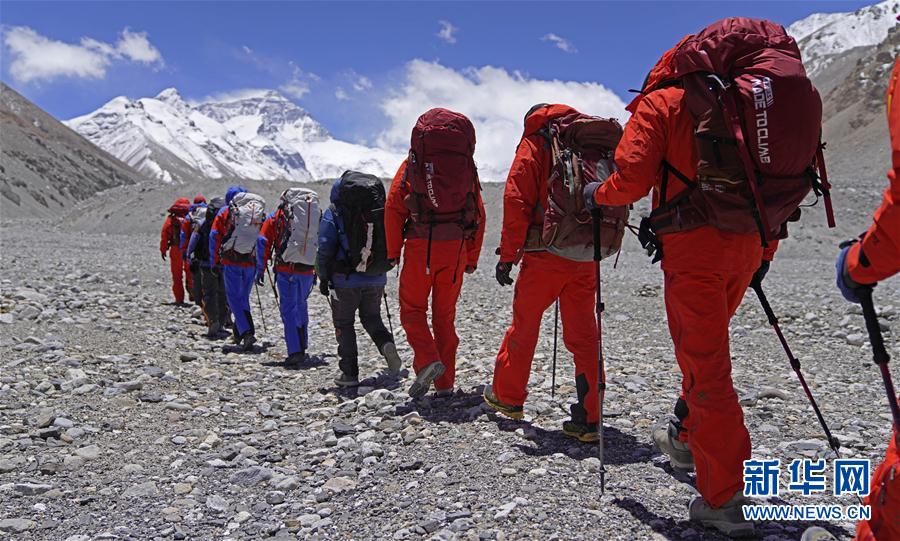 5月6日,登山隊員們離開珠峰大本營,向更高海拔進發(fā)。新華社記者普布扎西攝