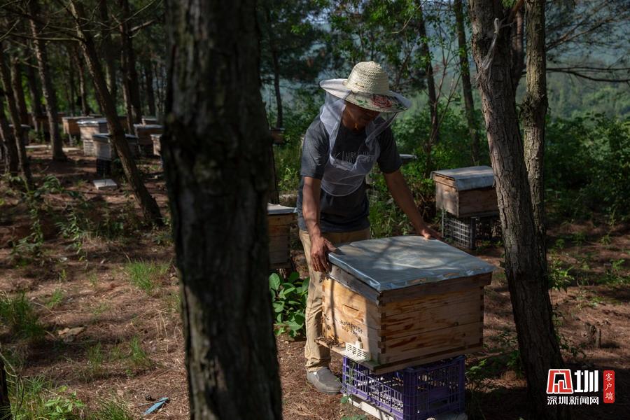 2020年5月3日,湖北省襄陽市,在南漳三道河水庫小島上,小島養(yǎng)蜂人趙德海每天要巡視蜂箱,查看蜂箱的蜜蜂密集度和蜜蜂繁殖情況,及時調(diào)整,才能避免蜜蜂受損。
