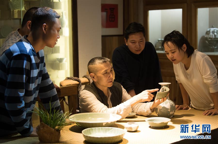 5月8日,項宏金(左一)在龍泉青瓷裝飾紋樣研究所向來訪的年輕瓷人介紹一件貫耳瓶。1965年出生的項宏金,被浙江龍泉年輕一代瓷人稱為“項哥”,他從20世紀(jì)90年代開始收集龍泉青瓷標(biāo)本,研究青瓷紋樣。2014年出版著作《龍泉青瓷裝飾紋樣》,次年開設(shè)龍泉青瓷裝飾紋樣研究所,將自己收藏的千余件標(biāo)本跟瓷器愛好者、創(chuàng)作者免費(fèi)分享。新華社記者翁忻旸攝