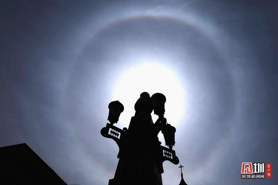 2020年5月8日,哈爾濱主城區(qū)上空呈現(xiàn)持續(xù)時(shí)間近一整天的罕見(jiàn)超大日暈,日暈與各種參照物構(gòu)成美輪美奐的自然天象景觀,令人贊不絕口嘖嘖稱奇。本次日暈環(huán)形巨大、色彩絢爛亮麗、持續(xù)時(shí)間長(zhǎng)等特點(diǎn),適合公眾肉眼觀賞。
