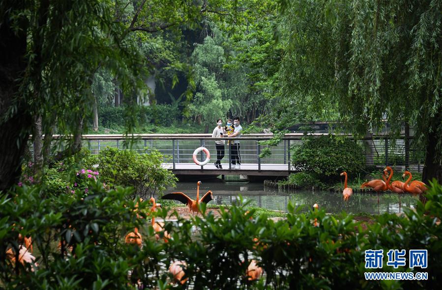 游客在武漢動物園觀看火烈鳥(4月22日攝)。 新華社記者 程敏 攝