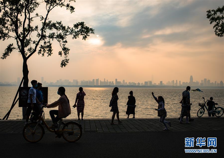 人們在武漢東湖綠道游玩(5月5日攝)。 新華社記者 肖藝九 攝