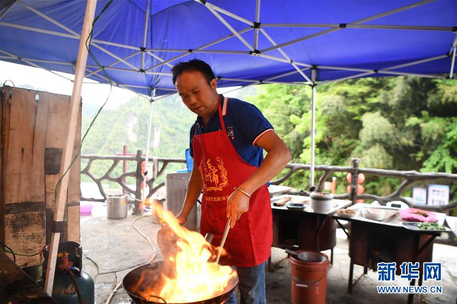 施六金在自家開的農(nóng)家樂為客人準(zhǔn)備午餐(4月25日攝)。1973年出生于十八洞村的施六金,由于父親患病很早就放棄學(xué)業(yè)和母親扛起了家庭的重?fù)?dān)。為了生活,他還曾遠(yuǎn)去東南亞打工。2015年,看到家鄉(xiāng)的變化,施六金回到村里開起了農(nóng)家樂,年度家庭人均純收入也從2014年的1715元增長(zhǎng)到了2019年的35696元。2018年,施六金與心愛的人組建了家庭。今年初,施六金與愛人迎來了一個(gè)大胖小子?!白鋈俗鍪乱没貓?bào)和感恩?!笔┝鸾o剛出生的兒子取名施澤恩。新華社記者薛宇舸攝