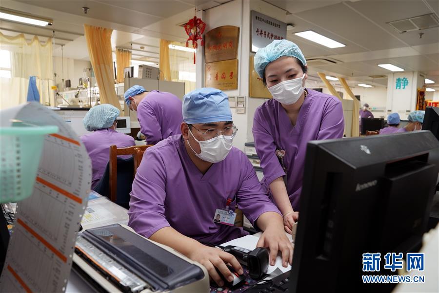 5月10日,在上海市普陀區(qū)中心醫(yī)院急診重癥監(jiān)護(hù)室,護(hù)士們?cè)诠ぷ鳌P氯A社記者劉穎攝