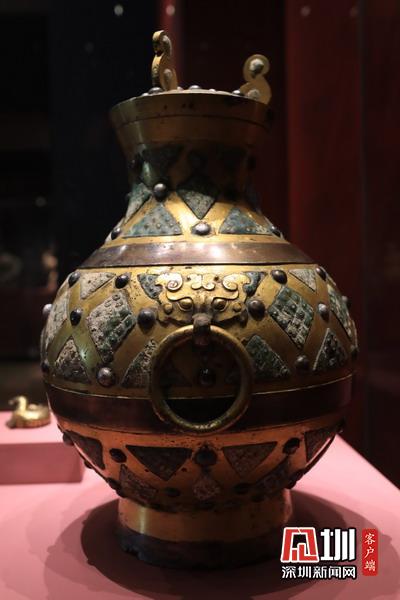 2020年5月10日報道,近十年來最大規(guī)模三國文物展“三國志——文化主題特展”,正在中華世紀(jì)壇展出。圖為滿城漢墓出土,鎏金銀乳釘紋銅壺。