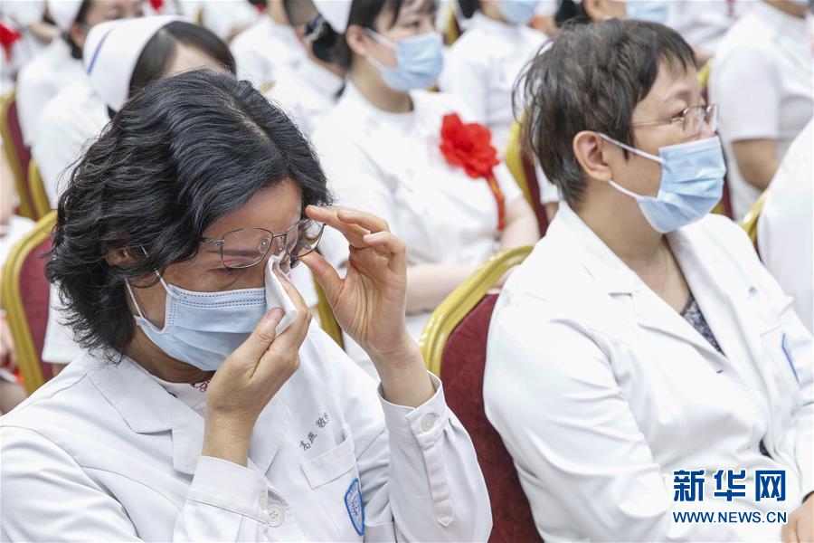 5月11日,北京大學(xué)人民醫(yī)院援鄂抗疫醫(yī)療隊(duì)感控專(zhuān)家高燕教授聽(tīng)?wèi)?zhàn)“疫”故事時(shí)感動(dòng)落淚。在國(guó)際護(hù)士節(jié)到來(lái)之際,北京大學(xué)人民醫(yī)院11日舉辦慶祝護(hù)士節(jié)暨優(yōu)秀集體和個(gè)人表彰活動(dòng),并邀請(qǐng)?jiān)踽t(yī)療隊(duì)護(hù)士代表分享戰(zhàn)“疫”故事。我國(guó)今年護(hù)士節(jié)的主題為“致敬護(hù)士隊(duì)伍,攜手戰(zhàn)勝疫情”。新華社記者張玉薇攝