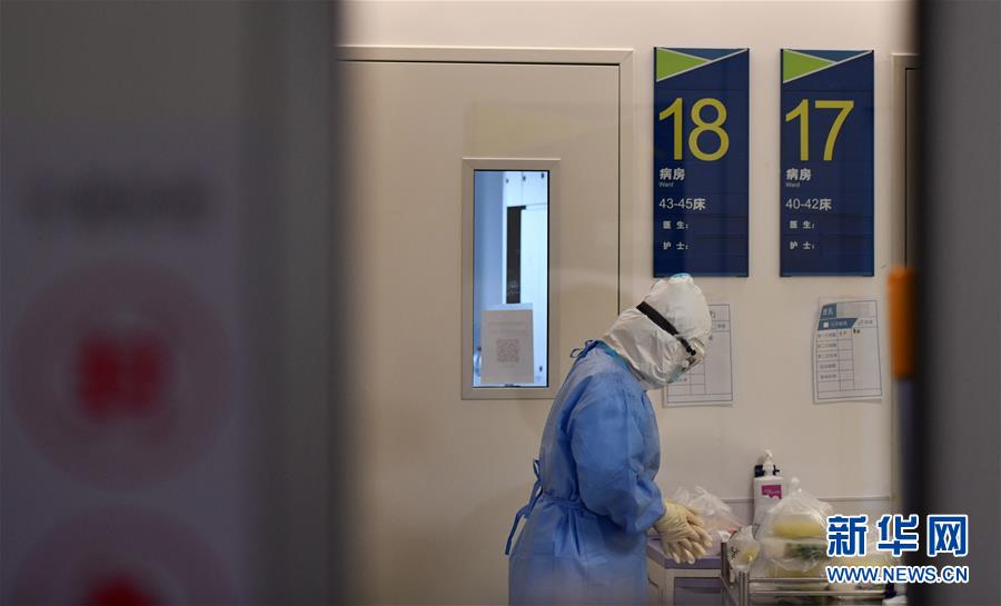 5月11日,在空港醫(yī)院隔離病房,身處“紅區(qū)”的護士準(zhǔn)備給處在醫(yī)學(xué)觀察的人員送飯。新華社記者李然攝