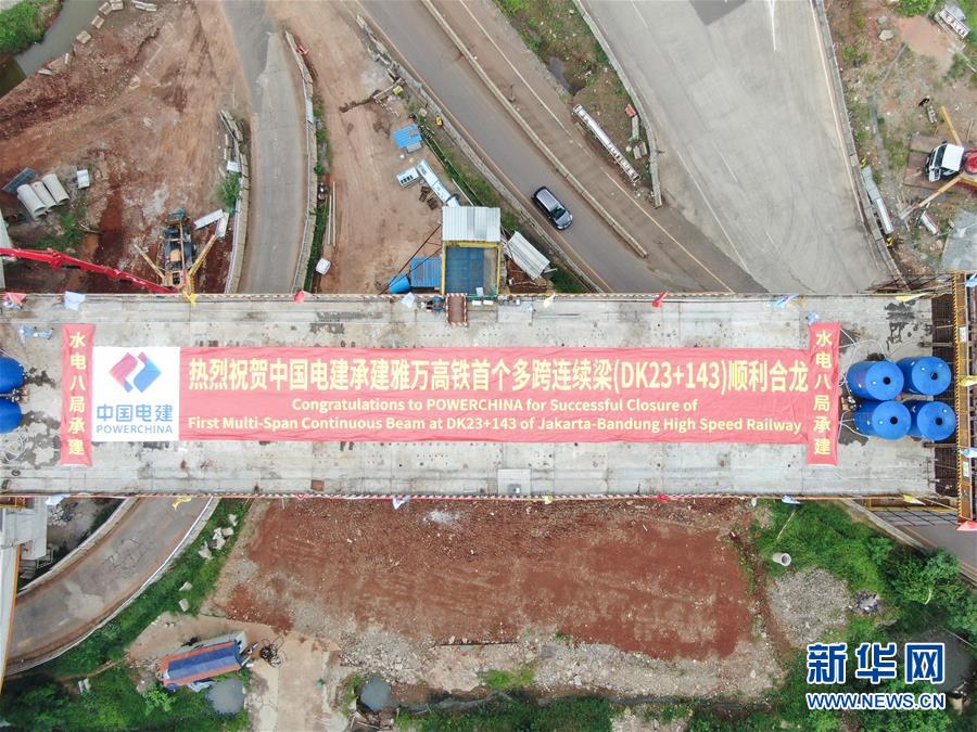這是5月10日拍攝的印度尼西亞雅萬高鐵2號特大橋施工現(xiàn)場。(無人機拍攝)當日,印尼雅萬高鐵首個多跨連續(xù)剛構(gòu)完成合龍,標志著雅萬高鐵2號特大橋施工進入攻堅建設階段。新華社記者杜宇攝