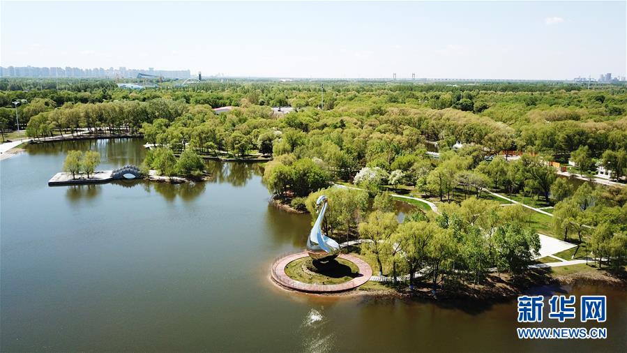 這是5月13日拍攝的太陽島風(fēng)景區(qū)(無人機(jī)照片)。時(shí)下,位于黑龍江省哈爾濱市的太陽島國家級(jí)風(fēng)景名勝區(qū)草青樹綠,綠意盎然。新華社記者王建威攝