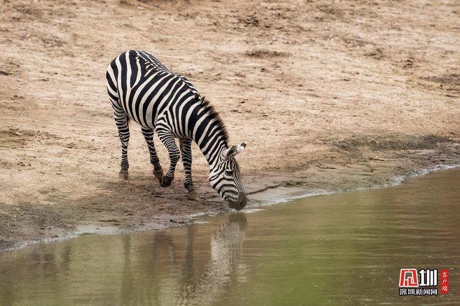 當(dāng)時(shí)有超過1000只斑馬,正在河岸上等候合適的機(jī)會(huì)過河,它們快速低頭喝水后又迅速返回河岸。