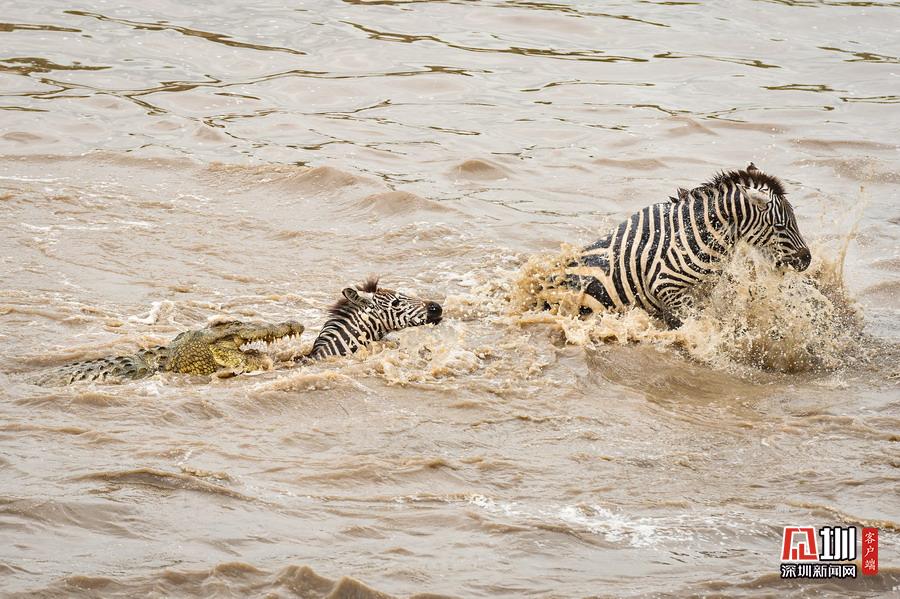 斑馬帶頭過河慘被伏擊鱷魚吞食 旁觀河馬機(jī)智逃脫