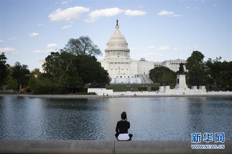 5月13日,一名女子美國(guó)華盛頓國(guó)會(huì)大廈附近休息。新華社記者劉杰攝