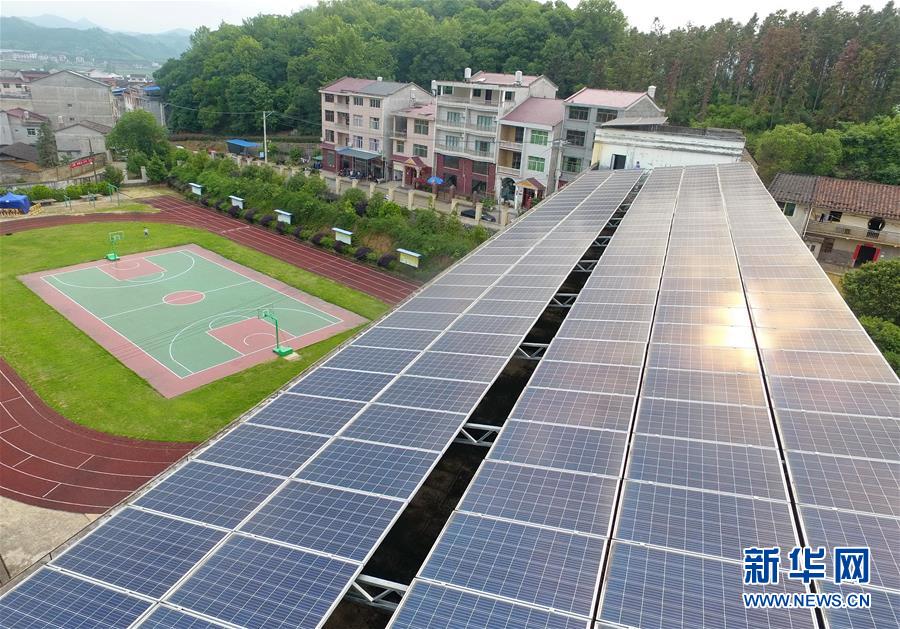 這是5月13日在福建省建甌市小橋鎮(zhèn)陽澤村拍攝的光伏電站(無人機照片)。陽澤村光伏發(fā)電精準扶貧項目裝機容量為50千瓦,年預計發(fā)電量5.4萬千瓦時。