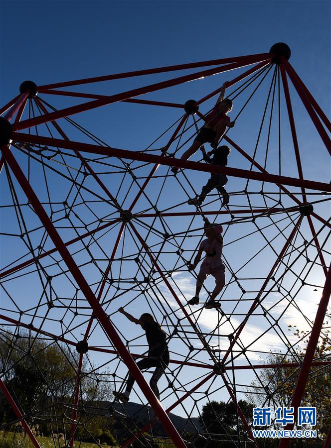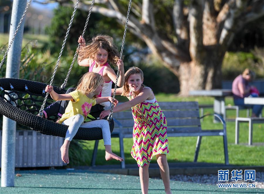 5月14日,孩子們在首都惠靈頓郊外公園的游樂場玩耍。當天是新西蘭從新冠疫情防控響應(yīng)三級下調(diào)到二級的第一天,經(jīng)濟活動全面重啟,公園等公共設(shè)施首次重新開放,中小學(xué)生將于5月18日全面返校復(fù)課。新華社記者郭磊攝