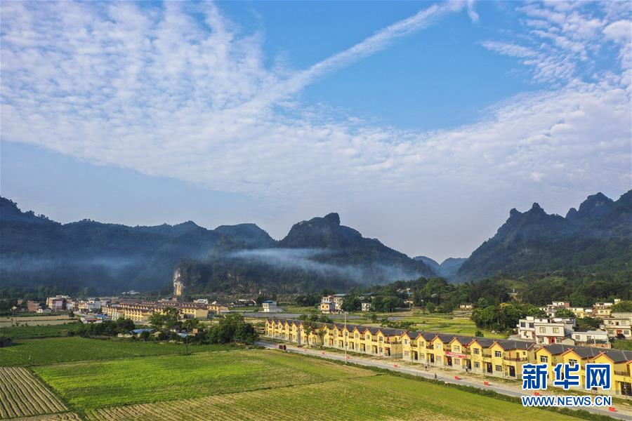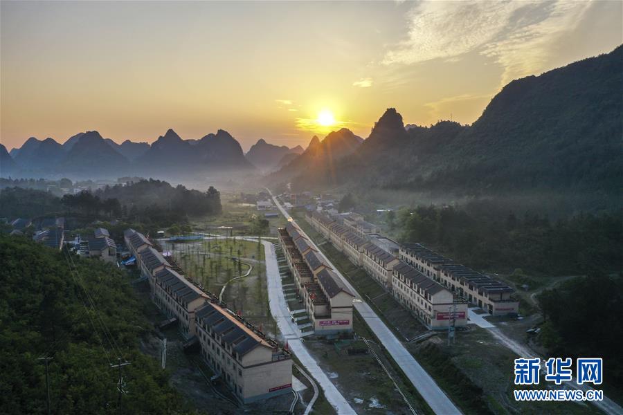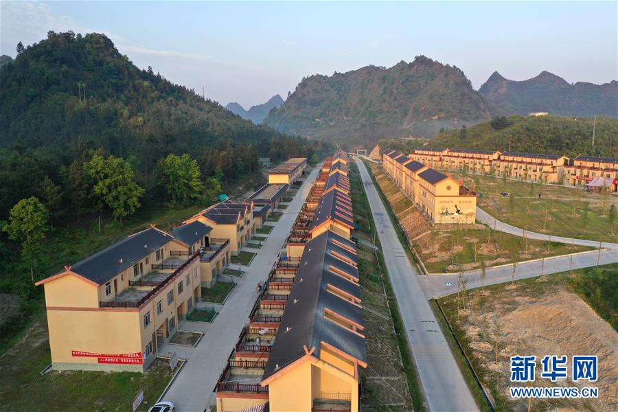 這是廣西南丹縣“千家瑤寨·萬戶瑤鄉(xiāng)”八圩瑤寨易地扶貧搬遷安置點(4月29日攝,無人機(jī)照片)。新華社記者曹祎銘攝