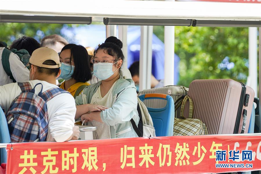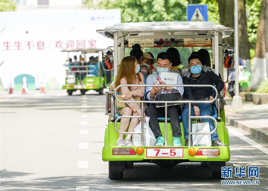 5月15日,在西南大學校園內(nèi),學生們搭乘校內(nèi)轉(zhuǎn)運車前往各自的宿舍。當日,重慶西南大學迎來疫情以來首批返校大學生。據(jù)介紹,按照疫情防控的需要,重慶市高校2020年春季學期從5月11日起按照“一校一策”原則,實行錯峰錯時分批次有序開學復(fù)課。新華社記者劉潺攝