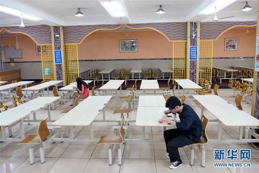 5月15日,在西南大學的一個學生食堂內(nèi),學生按照要求一人一桌吃午餐。當日,重慶西南大學迎來疫情以來首批返校大學生。據(jù)介紹,按照疫情防控的需要,重慶市高校2020年春季學期從5月11日起按照“一校一策”原則,實行錯峰錯時分批次有序開學復(fù)課。新華社記者劉潺攝
