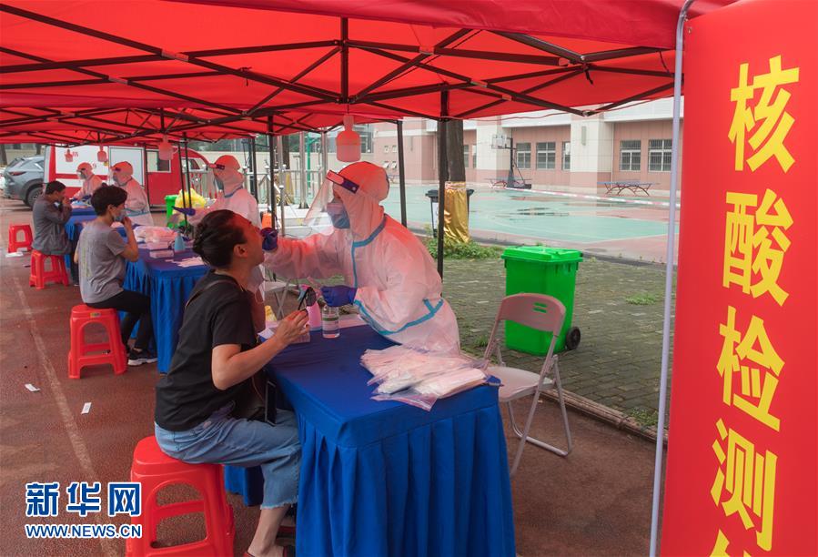 5月15日,在武漢東西湖區(qū)吳家山第一小學(xué)操場(chǎng)檢測(cè)點(diǎn),工作人員對(duì)市民進(jìn)行核酸檢測(cè)。近日,武漢將對(duì)全市市民有序開(kāi)展核酸檢測(cè),進(jìn)一步摸清無(wú)癥狀感染者底數(shù),進(jìn)而有效管控。新華社記者肖藝九攝