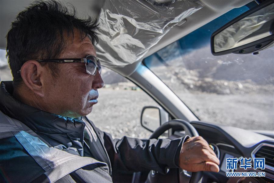 拉巴次仁駕駛巡護(hù)車(chē)在珠穆朗瑪峰國(guó)家級(jí)自然保護(hù)區(qū)內(nèi)巡邏(5月15日攝)。新華社記者孫非攝
