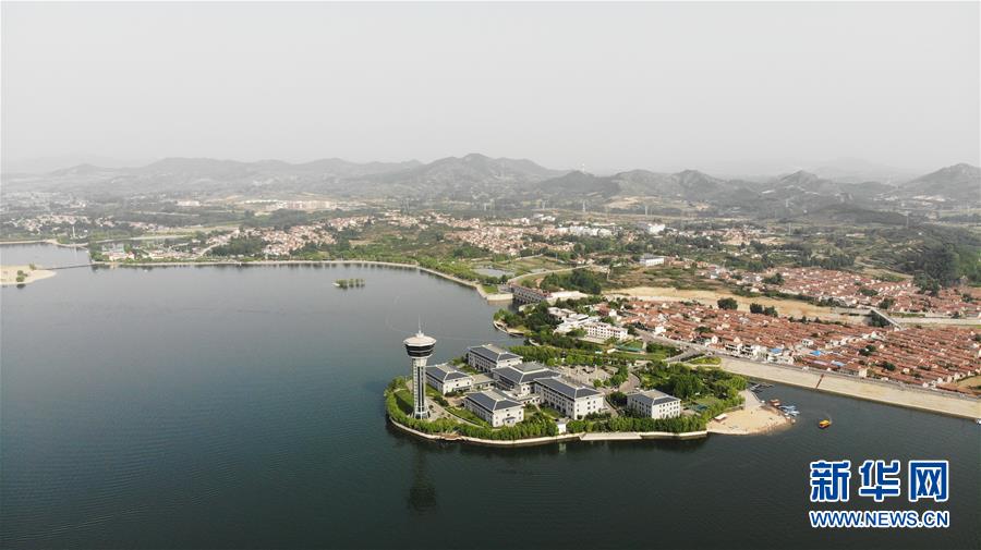 這是5月17日拍攝的雪野湖景色(無人機照片)。山東濟南風(fēng)景區(qū)——雪野湖波光粼粼,岸邊綠樹環(huán)抱,加上星星點點的帆船在湖面搖曳,景色宜人。新華社記者王凱攝