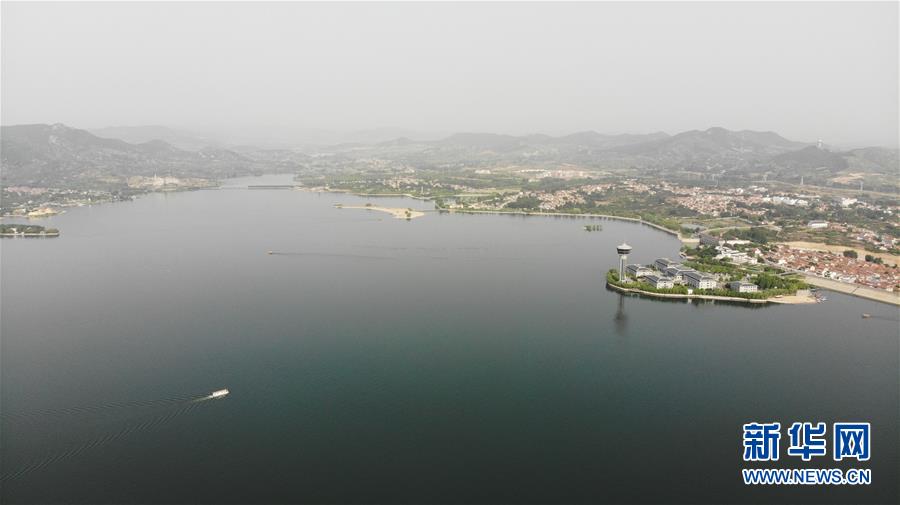 這是5月17日拍攝的雪野湖景色(無人機(jī)照片)。山東濟(jì)南風(fēng)景區(qū)——雪野湖波光粼粼,岸邊綠樹環(huán)抱,加上星星點(diǎn)點(diǎn)的帆船在湖面搖曳,景色宜人。新華社記者王凱攝