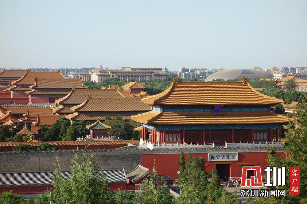 北京碧空萬里 游客登景山公園賞故宮美景
