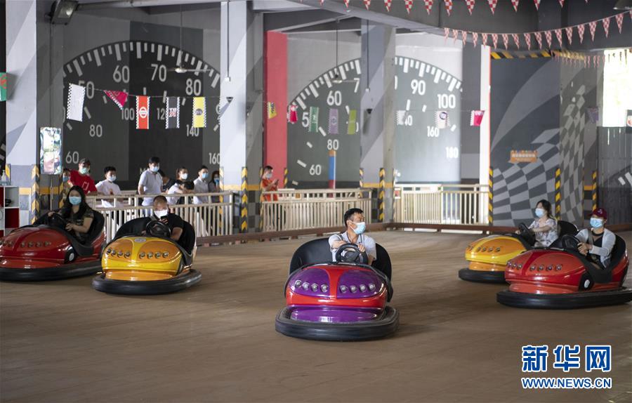5月19日,游客在武漢歡樂谷內(nèi)游玩。當(dāng)日,湖北武漢歡樂谷重新開放。園區(qū)執(zhí)行客流量管控,游客需通過網(wǎng)上預(yù)約才能進(jìn)入,室內(nèi)場(chǎng)館暫不開放。新華社記者熊琦攝