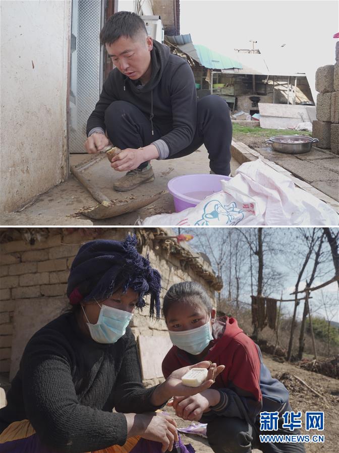 拼版照片上圖:在四川省涼山彝族自治州美姑縣瓦古鄉(xiāng),彭?xiàng)钤谙魍炼蛊?,?zhǔn)備制作土豆手工皂(3月10日,新華社記者吳光于攝);下圖:在瓦古鄉(xiāng),15歲的沙馬也曲(右)和她的媽媽拿到了彭?xiàng)钪谱鞯耐炼故止ぴ恚?月10日,新華社記者薛晨攝)。四川省涼山彝族自治州美姑縣瓦古鄉(xiāng)扶貧干部彭?xiàng)钏诘墓庞X(jué)村距鄉(xiāng)政府20公里,是美姑縣80個(gè)尚未脫貧村之一。他深知養(yǎng)成好的生活習(xí)慣,對(duì)當(dāng)?shù)孛撠氈陵P(guān)重要,所以他不僅督促老百姓疊被子、整理房間,幫當(dāng)?shù)氐暮⒆觽兿搭^、洗澡,還在疫情期間自制土豆手工皂分發(fā)給村民。彭?xiàng)钫f(shuō),疫情后準(zhǔn)備發(fā)動(dòng)留守婦女生產(chǎn)手工皂,計(jì)劃在1年內(nèi)建成一個(gè)吸納瓦古鄉(xiāng)4個(gè)村村民的手工皂合作社。黨的十八大以來(lái),我們堅(jiān)持以人民為中心的發(fā)展思想,明確了到2020年我國(guó)現(xiàn)行標(biāo)準(zhǔn)下農(nóng)村貧困人口實(shí)現(xiàn)脫貧、貧困縣全部摘帽、解決區(qū)域性整體貧困的目標(biāo)任務(wù)。目前看,脫貧進(jìn)度符合預(yù)期,成就舉世矚目。這些成績(jī)的取得,凝聚了全黨全國(guó)各族人民智慧和心血,是廣大干部群眾扎扎實(shí)實(shí)干出來(lái)的。脫貧摘帽不是終點(diǎn),而是新生活、新奮斗的起點(diǎn)。新華社發(fā)