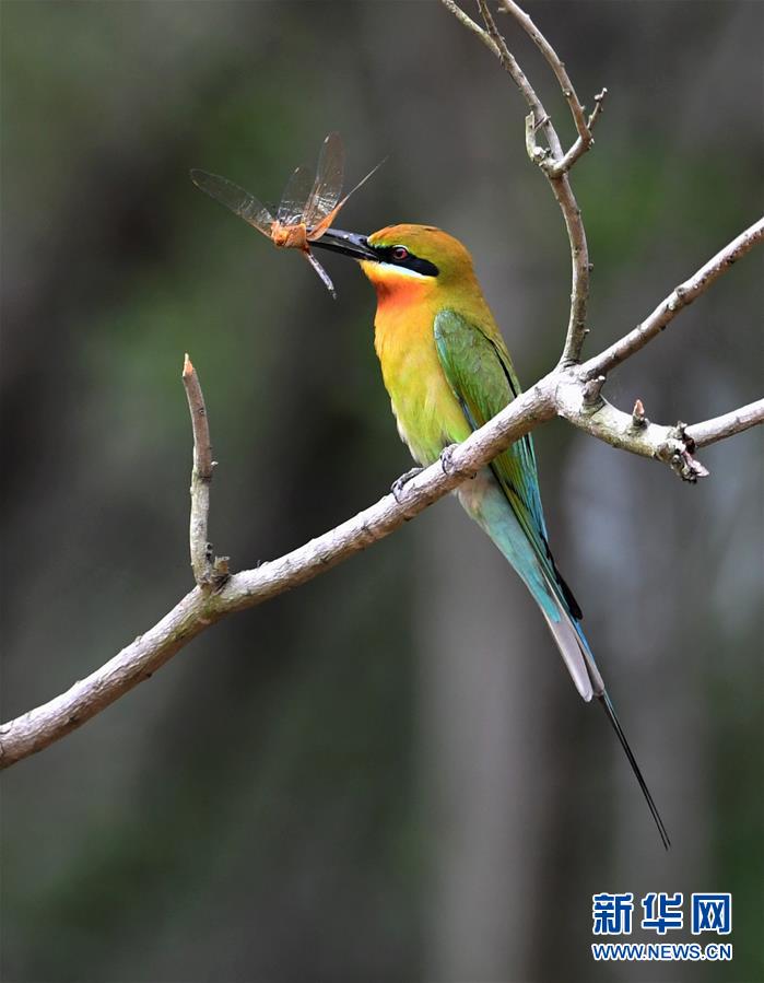 5月19日,在廈門五緣灣栗喉蜂虎自然保護(hù)區(qū),栗喉蜂虎捕到一只昆蟲。近日,大批栗喉蜂虎來(lái)到廈門五緣灣栗喉蜂虎自然保護(hù)區(qū)棲息、繁殖。新華社記者魏培全攝
