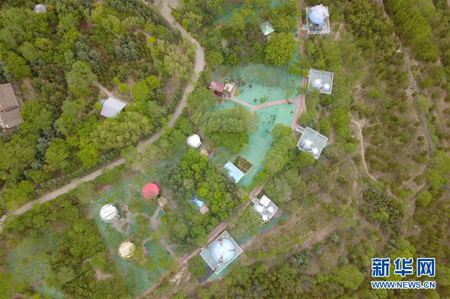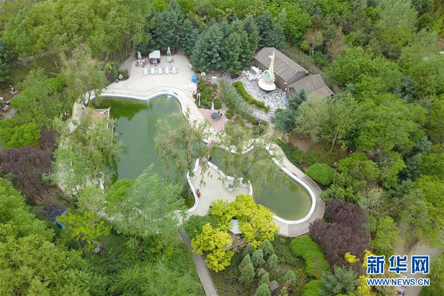 這是5月18日在蘭州市城關(guān)區(qū)拍攝的皋蘭山下五泉山公園初夏景象(無(wú)人機(jī)照片)。